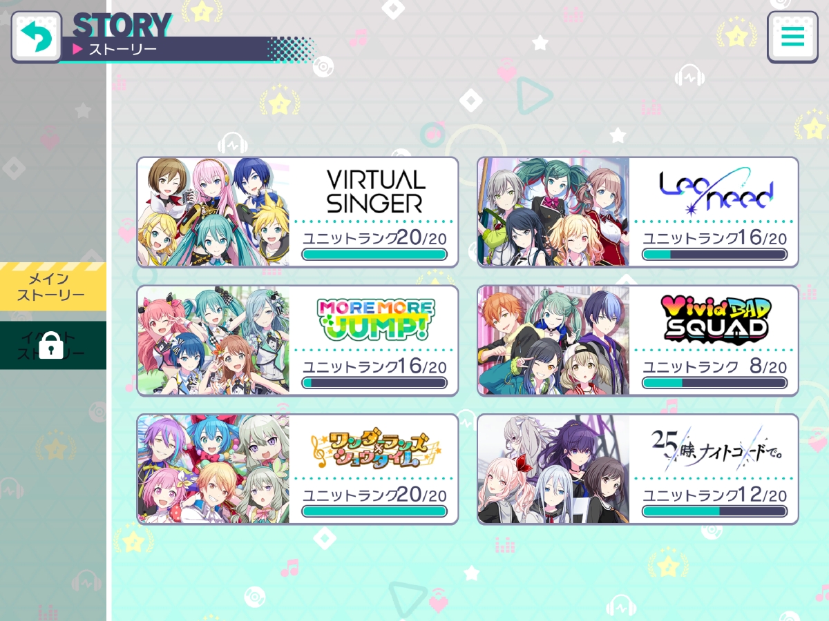 今はフルコンのフルコンを目指して曲を遊びつつストーリーが解放されたら読むという感じでプレイしています。プロセカはスクショとか動画を上げてもいいらしいので、せっかくですし貼っておきます。今こんな感じです。