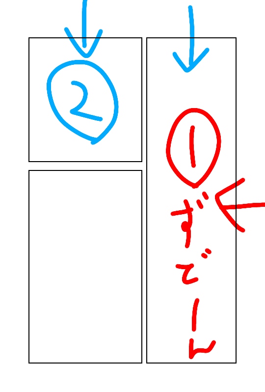 漫画って基本的に横長に割ることが多いと思うので、たまに縦長ずどーんを入れると効くんですけどね。web縦読みだと効き辛くなっちゃうんですねぇ。ふーむ。